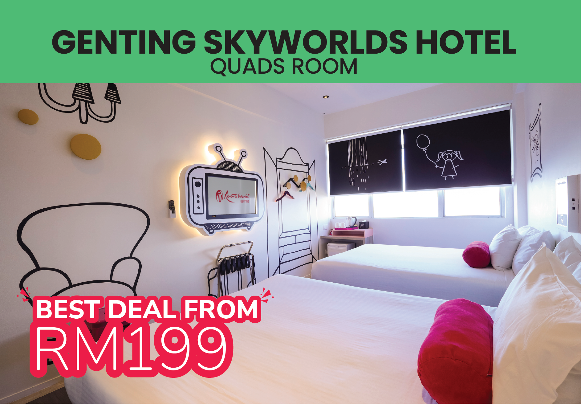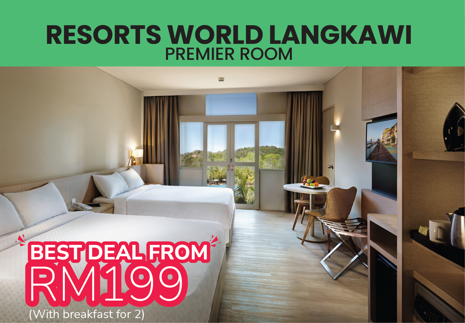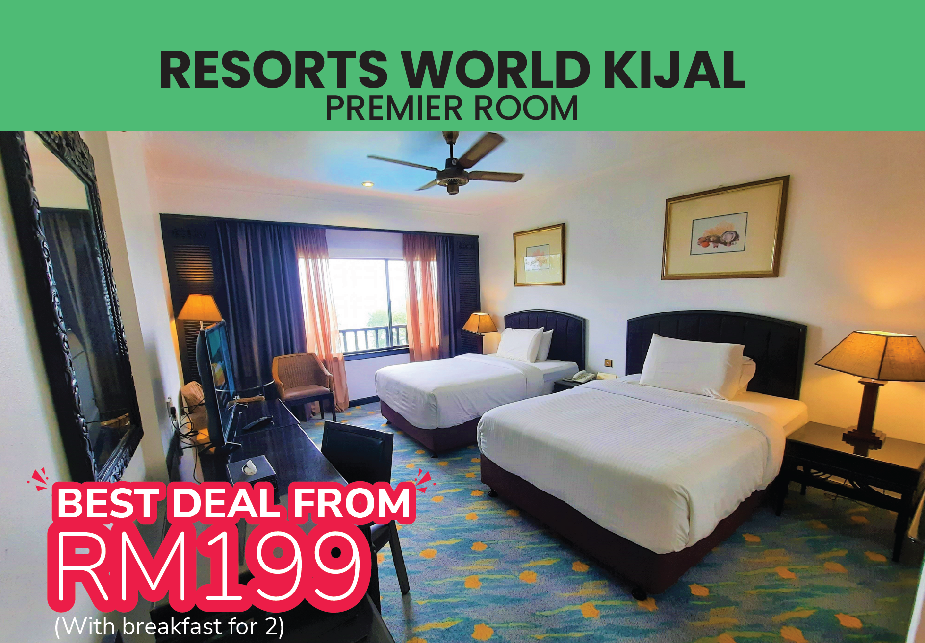 Tidak terhenti di tanah tinggi, pengalaman percutian turut diperluas ke pesisir pantai melalui Resorts World Kijal dan Resorts World Langkawi, masing-masing bermula RM199 termasuk sarapan untuk dua orang, sebuah keseimbangan antara santai dan eksplorasi. Tawaran ini sah untuk tempoh penginapan dari 6 April hingga 27 Ogos 2026, memberikan fleksibiliti kepada pengunjung untuk merancang perjalanan mengikut masa dan keselesaan sendiri.