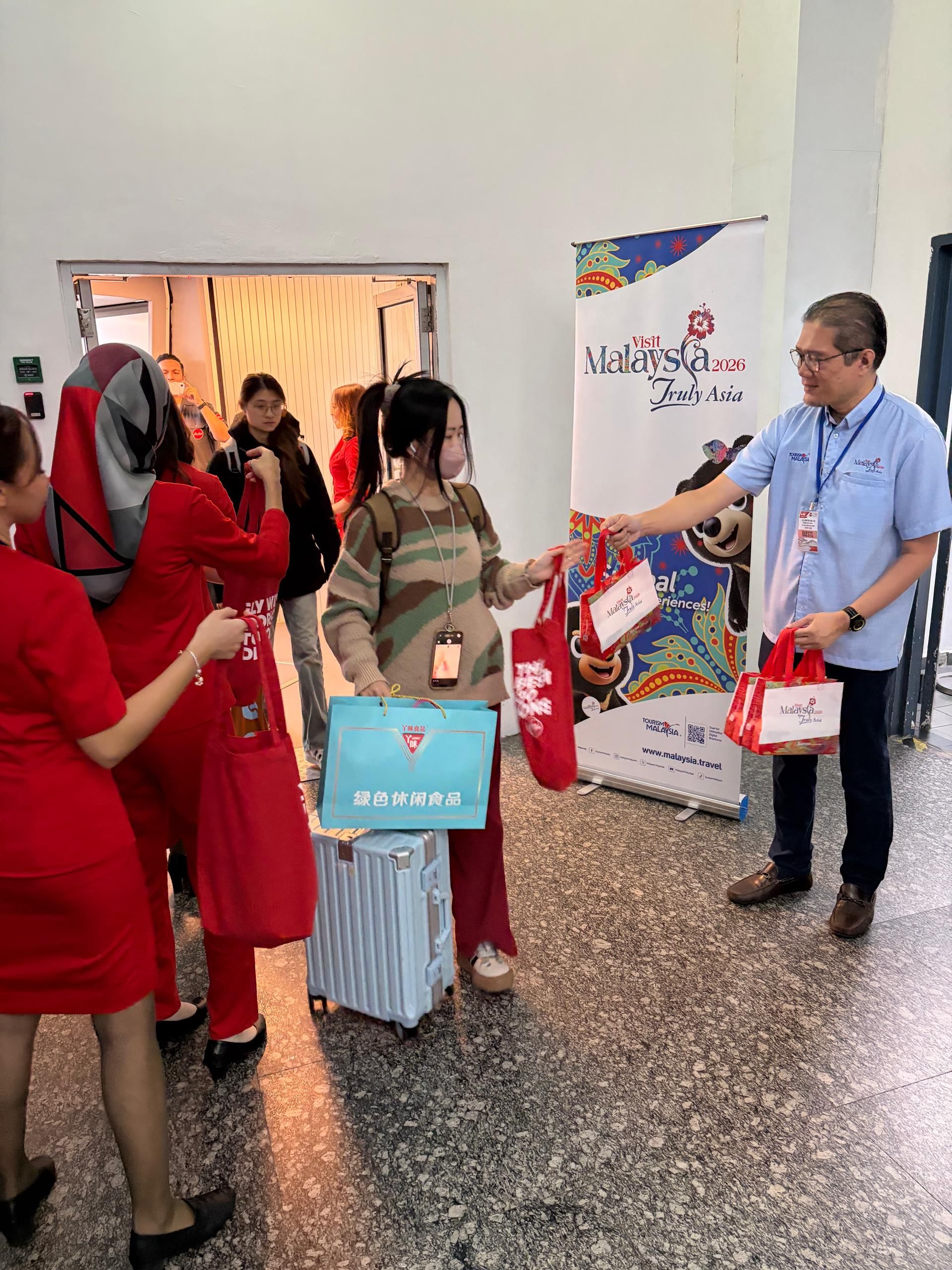 Ketibaan penumpang disambut secara peribadi oleh Awang Shawal bin Awang Sulaiman, Timbalan Pengarah Wilayah Tourism Malaysia (Wilayah Selatan), bersama wakil AirAsia serta pegawai Senai Airport Terminal Services Sdn. Bhd. Sambutan ringkas namun bermakna ini mencerminkan kesungguhan Malaysia dalam menghargai setiap hubungan baharu yang dibina melalui udara.
