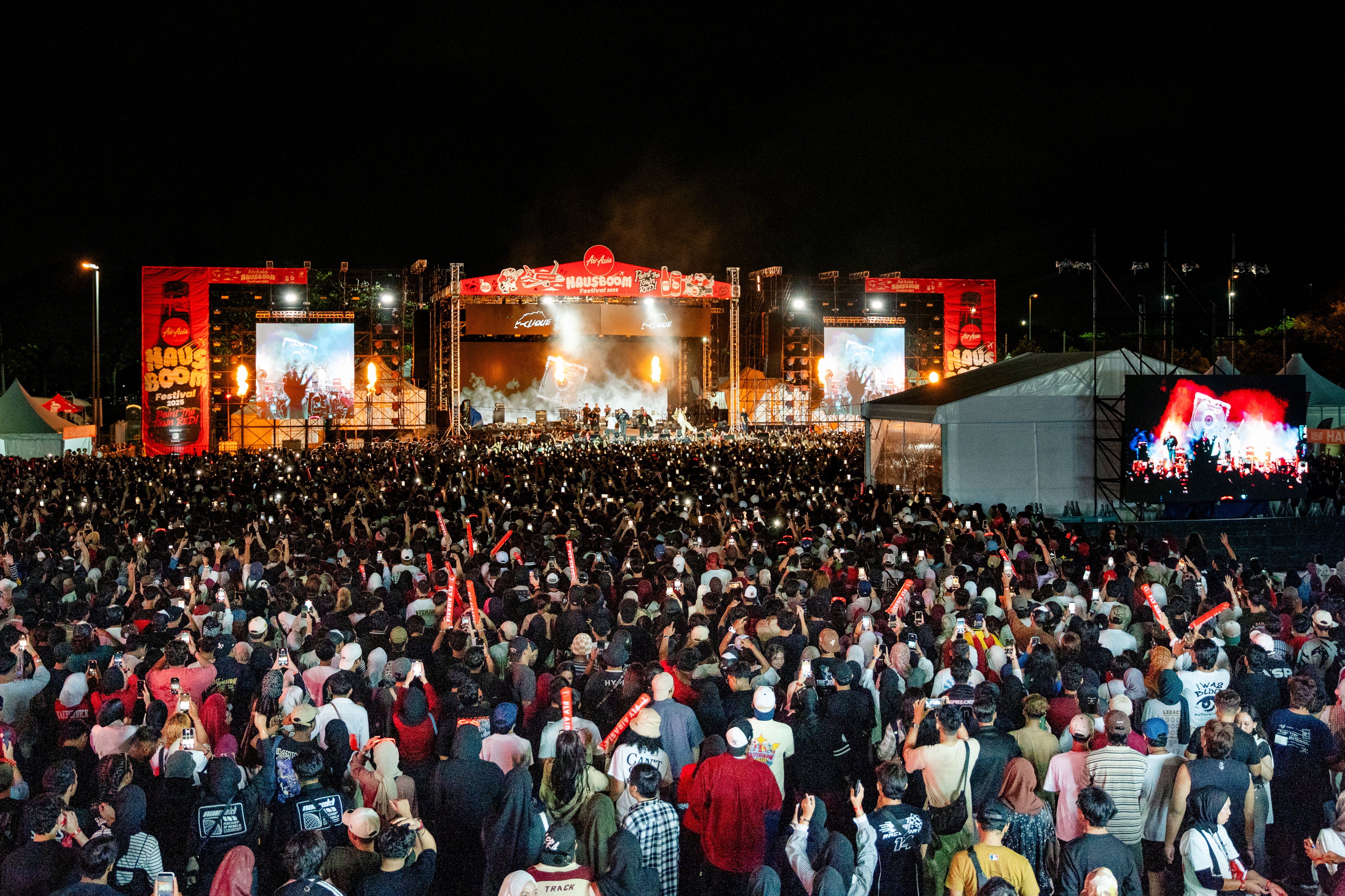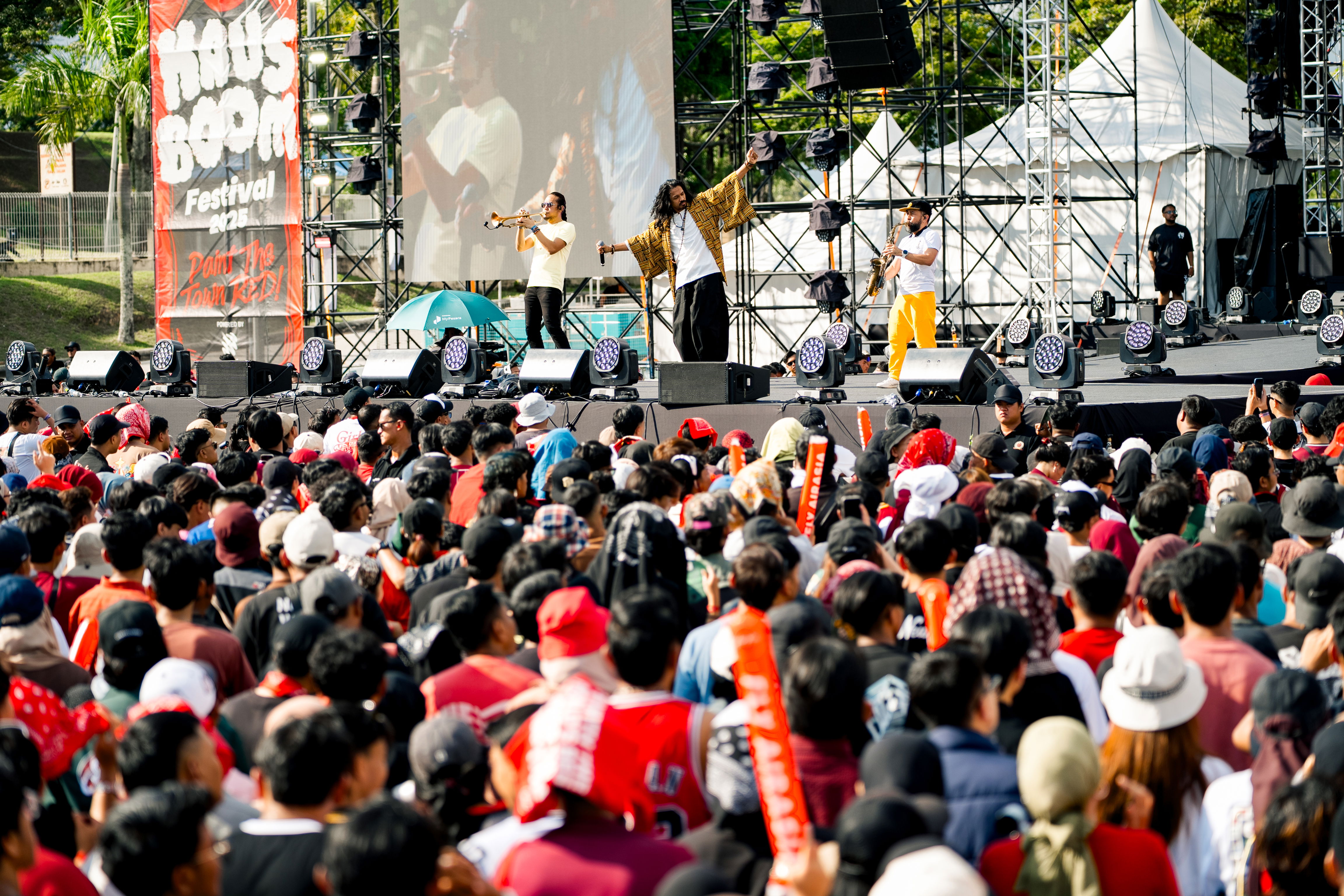 Bernafas dalam limpahan warna merah, denyut nadi yang bergetar, bukan sekadar dari pancaran lampu pentas, tetapi daripada ribuan jiwa yang berkumpul menyambut pesta yang telah menjelma sebagai gerakan budaya. AirAsia Hausboom Festival 2025 dikuasakan oleh Hotlink sekali lagi menjadi altar tempat muzik, seni, dan komuniti bertaut dalam satu lengkung rasa yang sukar dijelaskan dengan kata-kata. Dua belas jam tanpa henti, dari tengah hari hingga tengah malam, MAEPS menjadi ruang abstrak di mana nada menggantikan bahasa, dan manusia menjadi satu dalam getaran bass dan teriakan melodi.