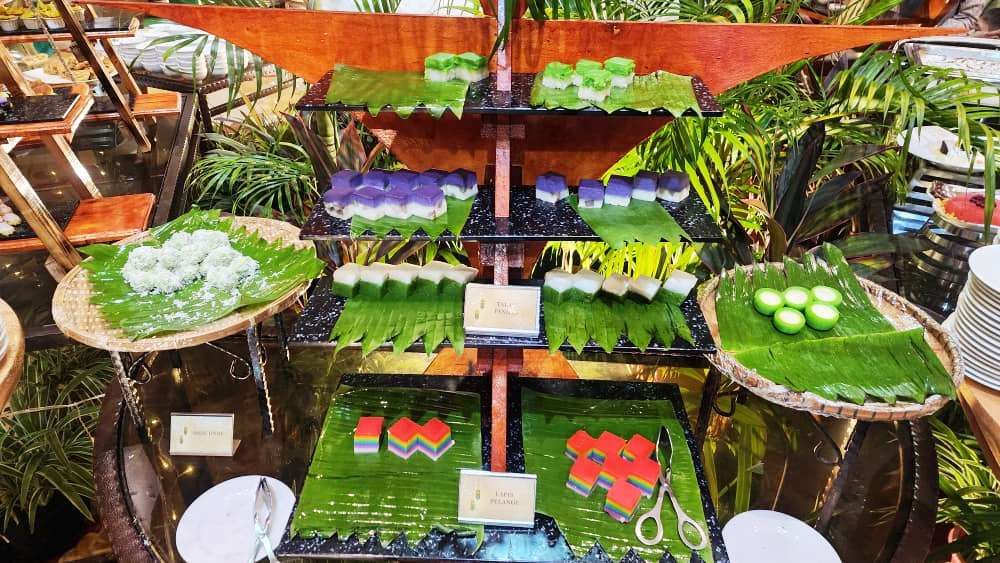🍮 Kuih-muih Tradisional – Seri muka, kuih talam, kuih lapis yang berlapis warna merah jambu dan hijau — semuanya menambah nostalgia kampung.
