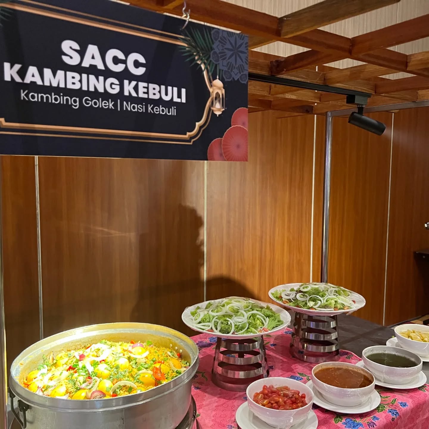 🍗 Kambing & Nasi Kebuli SACC – Aroma rempahnya memenuhi ruang, nasi berkerisik bersama kambing yang empuk telah diperap sempurna, menjadikan setiap suapan penuh tekstur dan keseimbangan rasa.