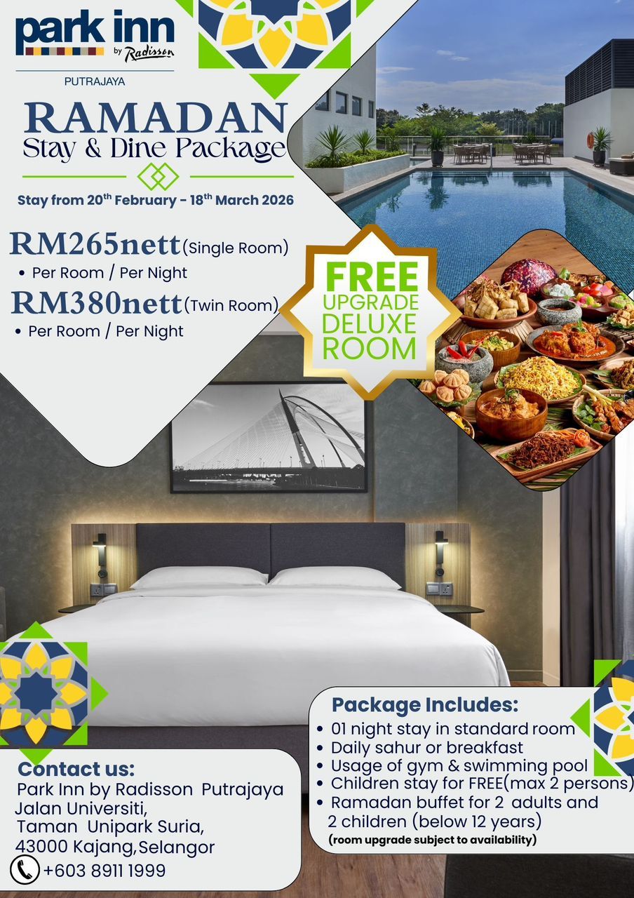 Untuk yang ingin mengubah sesi berbuka ini menjadi pengalaman lebih lengkap, hotel ini turut menawarkan Pakej Ramadan Staycation. Pakej ini merangkumi penginapan satu malam di bilik Standard, buffet Sajian Warisan Bonda untuk dua orang, serta sahur atau sarapan pagi. Pilihan harga ditawarkan pada RM265 nett (Single) dan RM380 nett (Double), dengan tempoh tempahan dari 20 Februari hingga 20 Mac 2026. Tempahan awal bilik diperlukan dan boleh dibuat melalui Jabatan Reservasi.