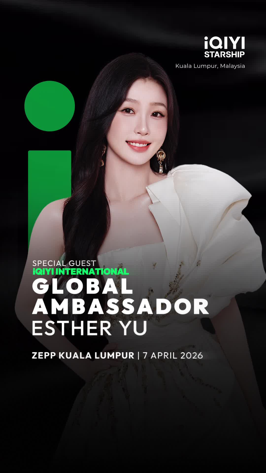 Tarikh 7 April 2026 bakal menjadi detik yang dinanti-nantikan. Pada malam tersebut, pentas Zepp Kuala Lumpur akan menyambut kehadiran bintang popular China, Esther Yu (虞书欣), yang tampil buat pertama kalinya bertemu peminat di Malaysia. Kehadirannya sebagai Duta Global Antarabangsa iQIYI menambah kemeriahan acara yang dijangka menghimpunkan peminat drama Asia dari pelbagai latar belakang.