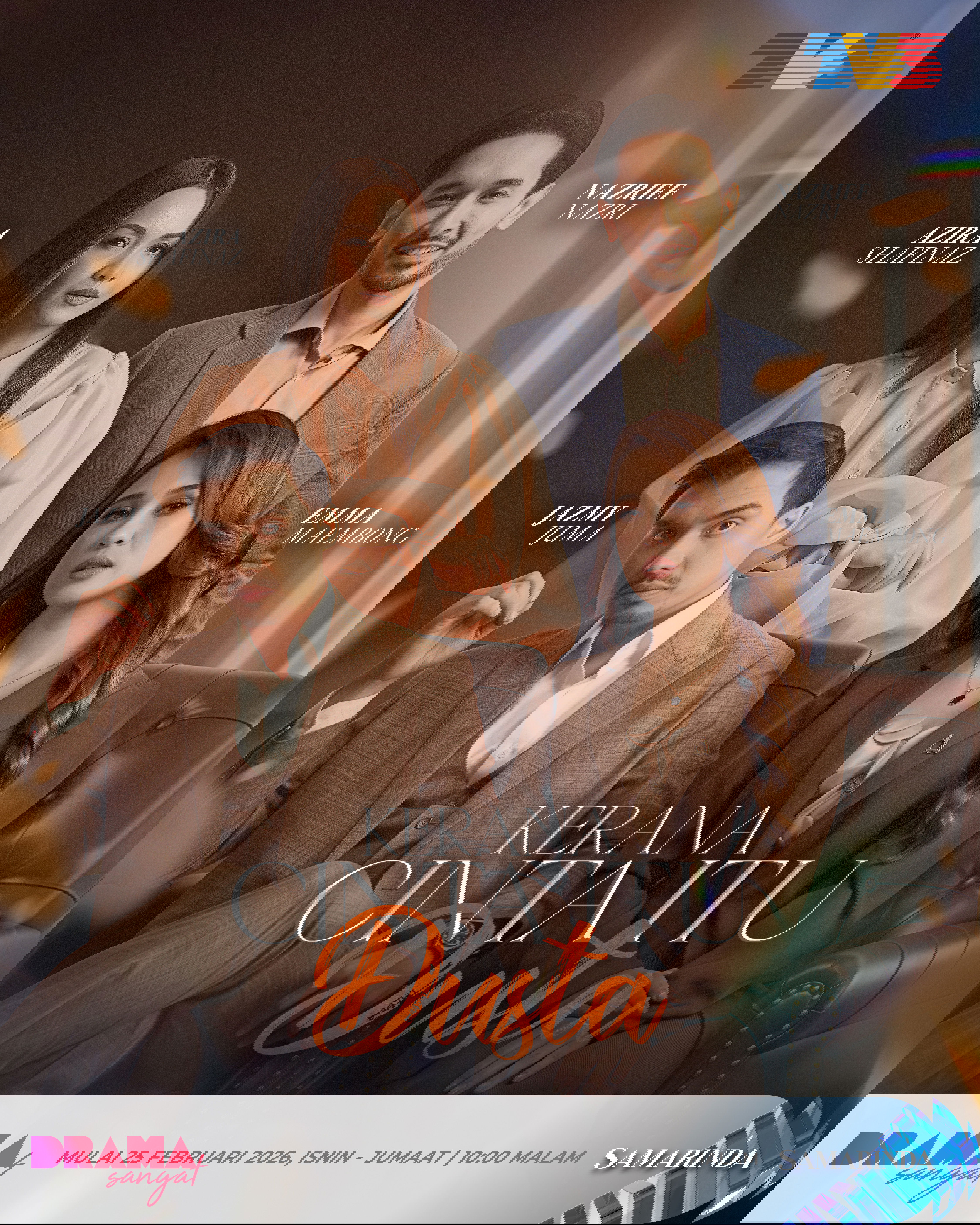 Mulai 25 Februari 2026, setiap Isnin hingga Jumaat jam 10 malam, drama 30 episod ini membentangkan kisah cinta moden yang terperangkap antara kejayaan dan kepercayaan yang semakin goyah. Diterajui barisan pelakon popular seperti Jazmy Juma, Emma Maembong, Azira Shafinaz dan Nazrief Nazri, drama ini mengangkat dunia pempengaruh sebagai latar utama, satu cerminan lanskap masyarakat hari ini.
