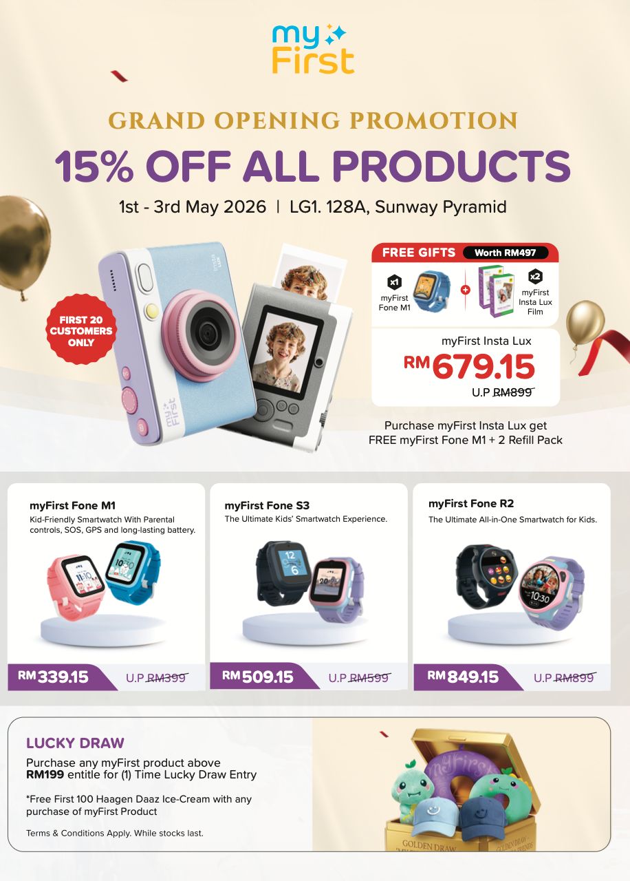 Sebagai meraikan pembukaan ini, sambutan Grand Opening akan berlangsung dari 1 hingga 3 Mei dengan pelbagai aktiviti mesra keluarga. Daripada promosi eksklusif hingga persembahan tarian singa, menjadikan pelancaran ini lebih daripada sekadar acara komersial. Antara tarikan utama termasuk hadiah myFirst Fone M1 untuk pelanggan terawal, diskaun produk, cabutan bertuah serta baucar ais krim Häagen-Dazs, menjadikan pengalaman ini lebih dekat dengan konsep “family day” daripada sekadar membeli-belah.