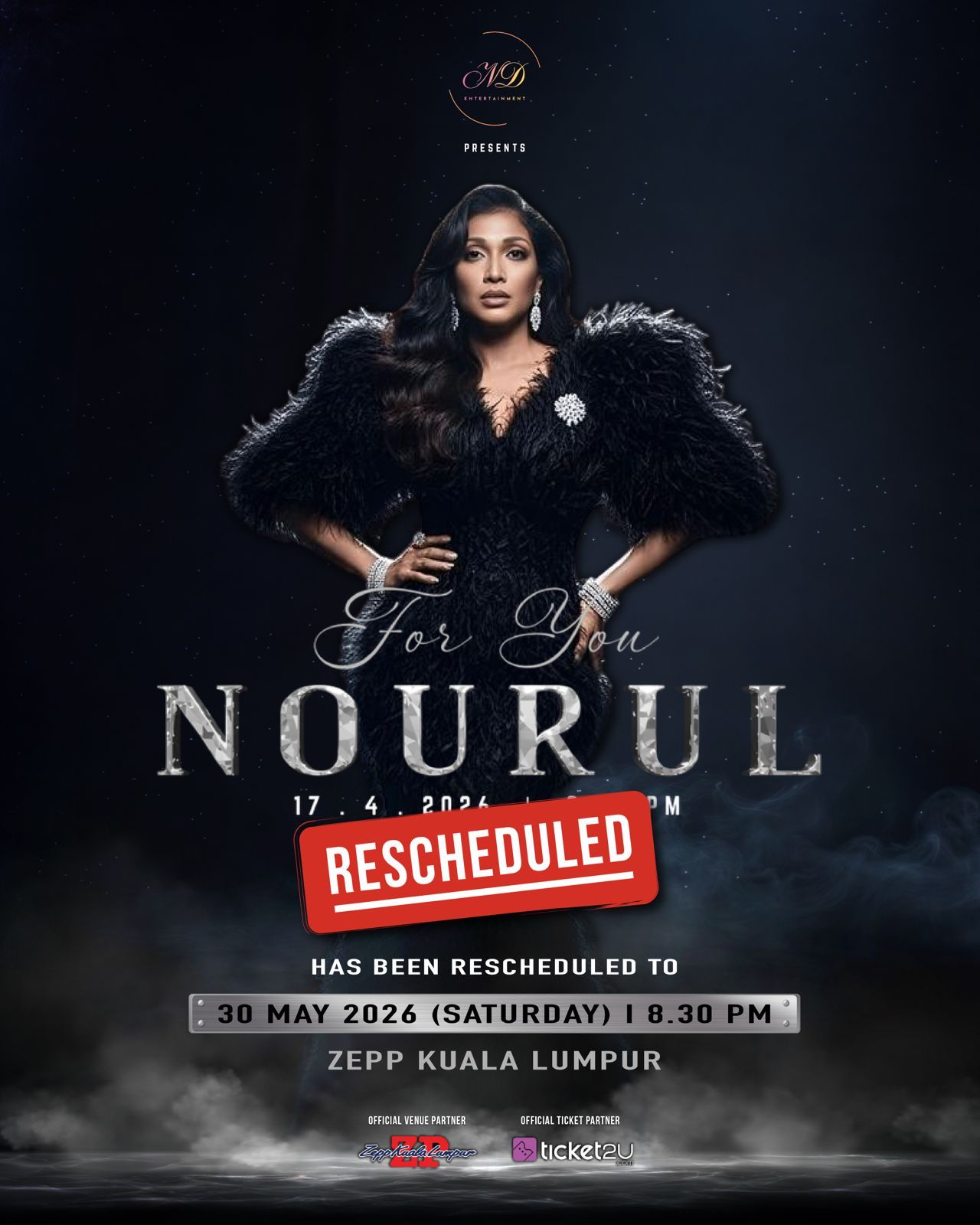 Konsert “For You Nourul” akan berlangsung pada 30 Mei 2026, jam 8.00 malam, bertempat di Zepp Kuala Lumpur. Tarikh ini disifatkan sebagai waktu yang paling tepat untuk menghimpunkan kenangan, menyatukan suara, dan menghidupkan kembali lagu-lagu yang pernah menjadi latar perasaan ramai.