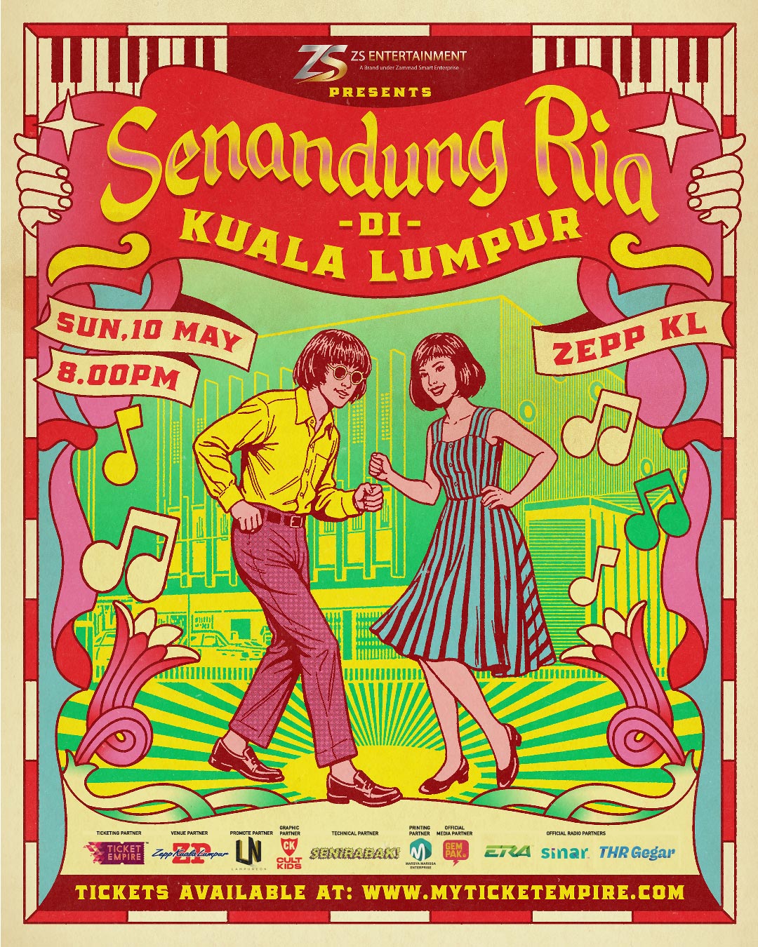 Gema retro dan keanggunan jazz-pop bakal merayap lembut ke tengah ibu kota Mei ini. “Senandung Ria Di Kuala Lumpur” mengangkat dua nama yang sinonim dengan estetika klasik, White Shoes & The Couples Company serta NonaRia, ke satu pentas eksklusif yang hanya akan berlangsung untuk satu malam. Tarikh 10 Mei 2026 (Ahad) ditetapkan sebagai pertemuan istimewa itu, dengan Zepp Kuala Lumpur dipilih sebagai latar utama. Anjuran ZS Entertainment bersama LampuNeon Entertainment ini dirancang sebagai sebuah pengalaman muzikal yang lebih daripada sekadar persembahan rutin.