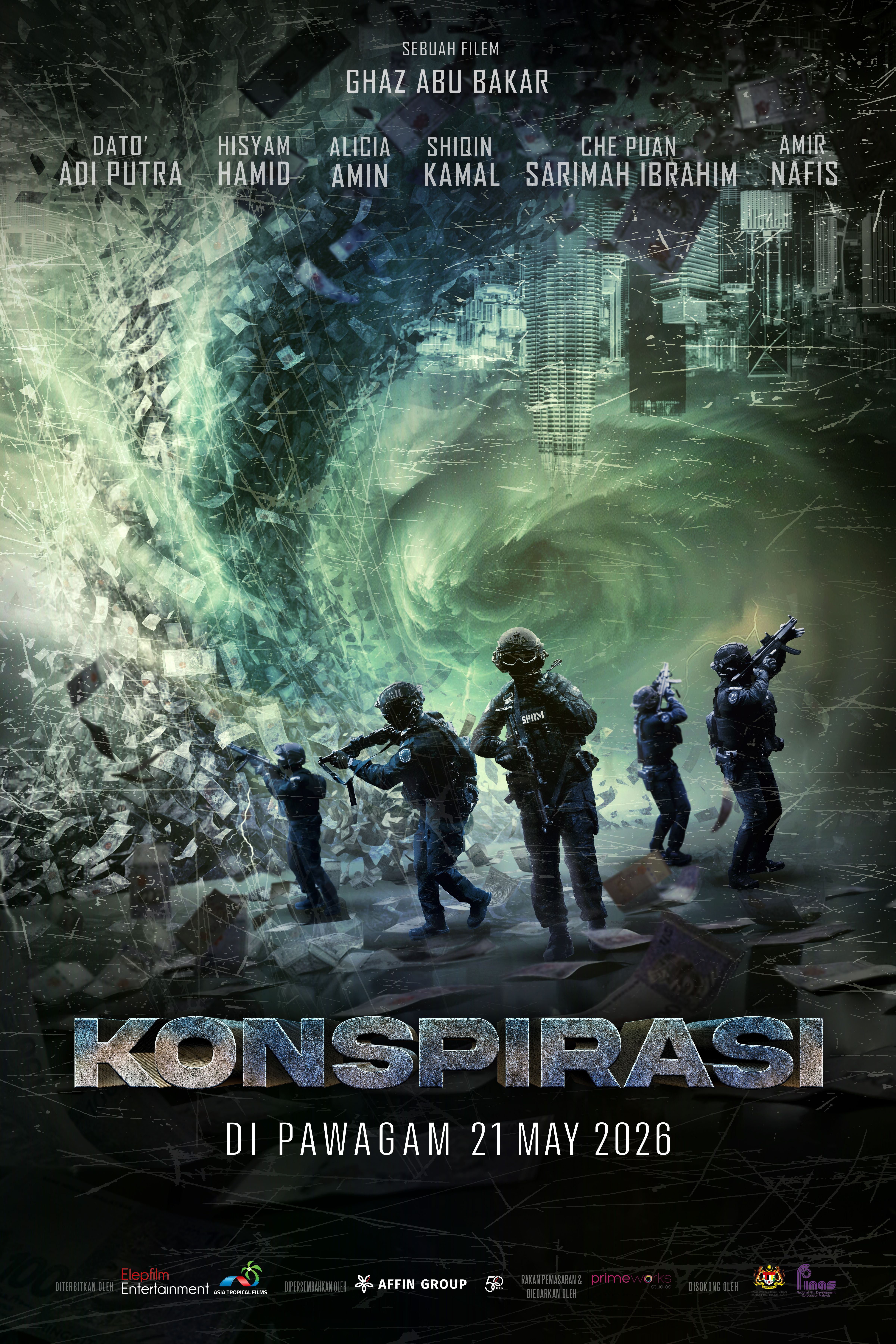 Diarahkan oleh Ghaz Abu Bakar, filem ini diterbitkan oleh Elepfilm Entertainment dan Asia Tropical Film Sdn. Bhd dengan sokongan Primeworks Studios sebagai rakan pemasaran, menggabungkan kekuatan produksi dengan naratif yang lebih matang dan berlapis. Apa yang menjadikan Konspirasi lebih daripada sekadar filem aksi adalah pendekatannya terhadap emosi manusia: bagaimana kuasa mampu mengubah, bagaimana tekanan mampu memecah, dan bagaimana keputusan kecil mampu membawa akibat yang besar.